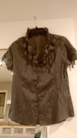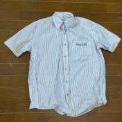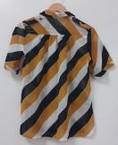 黄土色 黒 白 斜めストライプ シャツ