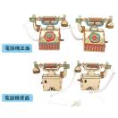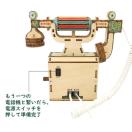 キット内容:組み立てマニュアル、電話機2台分組み立てキット(木製パネル、電池ボックス、制御基板、電話線、受話器コード、6mmネジ、7mmネジ、8mmネジ、10mmネジ、12mmネジ、輪止め、ソフトギア、親ボルト、子ボルト、鉄軸、軸受け、モーターパネル、クラウンギア、シングルギア、電源スイッチ、モーター、スピーカーケーブル),