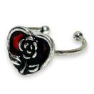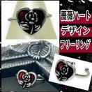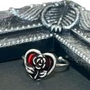 血液の様なブラッドレッドの樹脂が流し込まれたハートの真ん中に薔薇が1輪デザインされた病みカワデザインのフリーリング
