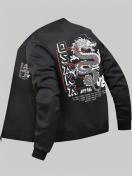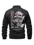大阪 日本 グラフィック ポリエステル スポーツ ジャケット メンズ - カジュアル 週末 ジップアップ スタンドカラー ニット ファブリック ジャケット 幾何学 ドラゴン パターン, わずかなストレッチ, レギュラーフィット 秋/冬用