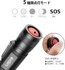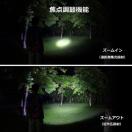 【便利なズーム式・5種類の点灯モード】この懐中電灯には、伸縮式のフォーカスレンズが搭載されており、ヘッド部分を引っ張ることで光の焦点距離や照射範囲を調整することができます。これまで夜間の安全性を気にしていた方におすすめです。さらに、ハイ、ミドル、ロー、フラッシュ、SOSの5つの点灯モードを搭載しています。用途に応じてモードを変えられるので、とても便利です。