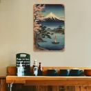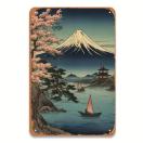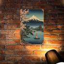 富士山浮世絵スタイルのメタルウォールアート、30.48cm x 20.32cm - リビングルーム、カフェ&ホームデコに最適