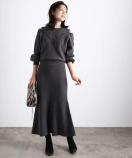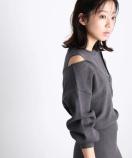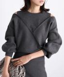 肩部分にスリットを施した、レイヤード風デザインのニットプルオーバー。