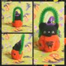 ハンドメイド♪ポンポンマスコット☆カボチャin黒猫ちゃん☆@