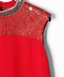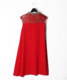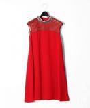 落ち感の綺麗なアセテートジョーゼット素材を使用したワンピース。繊細なレースを胸元で切り替えた肌が透ける女っぽいデザインがフェミニン薫るアイテムです。スタンドカラーの存在感あるビジューをトッピングした華やかなデザインもポイント。歩く度に揺れる、とろみある上質な素材に美しいフレアーシルエットが織りなす表情豊かなディテールが魅力です。