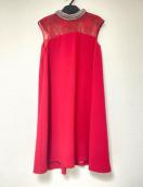 GRACECONTINENTAL赤ビジュースタンドフレアワンピースドレスグレースコンチネンタルレッドパーティー結婚式披露宴