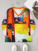 カラーブロック Vネック 長袖 Tシャツ、春と秋の普段着、レディース服