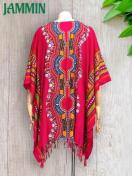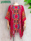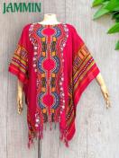 アフリカの民族衣装ダシキ柄のフリンジポンチョです。