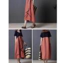 ルーズビッグコードレディースファッションコットン麻クラッシュカラーラウンドネックドレス