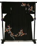 ・黒地に花柄が浮き出て印象的な逸品でございます