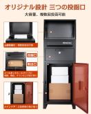 【防水防塵錆防止】宅配ボックスの上部投函口、メールボックス部分は雨侵入防止のため、デコ設計を採用しています。内部に盗難防止プレートを取り入れ、上部投函口からの取り出しはできません。箱全体に亜鉛メッキを施し、防錆性に優れており、より長くご利用頂けます。 【細部まで丁寧な仕上げ】メールボックスのフタ、メイン扉にマグネット付き、磁力でしっかり閉まります。上部投函口の縁の緩衝パッドにより、摩耗や変形を軽減させます。内部に印鑑入れが二箇所設置されています。
