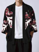 メンズカジュアル着物スタイル女性サムライルーズフィットオープンフロントシャツ、夏と写真用の男性服