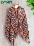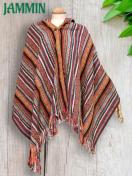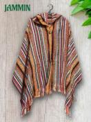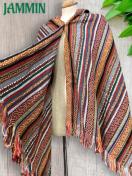 アジアンな織り生地を使ったざっくりしたポンチョ風の羽織りです。
