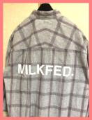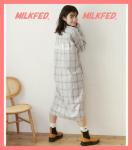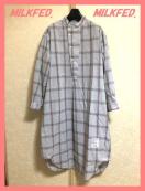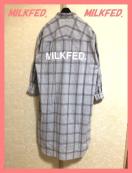 ミルクフェドのかわいい完売バックロゴチェックフレアロングシャツワンピです。