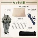 【商品内容】:テント本体/サイドシート/ペグ×10/3mロープ×6/収納袋