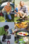 【携帯便利】ハンドル折畳で9点を一括収納、コンパクトと軽量でキャンプへ持ちこび、キャンプだけではなく、万が一災害時の調理器具として、炊飯、炒め物、コーヒどか、お湯を沸かせます。