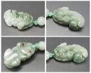AA天然石柄入りひすい本翡翠ヒキュウ彫りキーホルダー