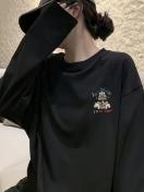BIENDOO レディース カジュアル 長袖 Tシャツ ハッピーダックプリント コットンニット ラウンドネック ティー ルーズフィット Hライントップ 春/秋用 - ブラック