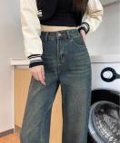 カジュアルジーンズ/ユーズド加工デニム/体型カバー ズボン