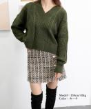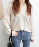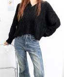 こなれ感のあるざっくりケーブル編みと、ぽわん袖の組み合わせが特徴で、表情豊かに個性を放つ一枚です