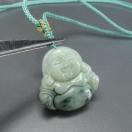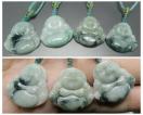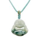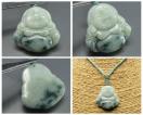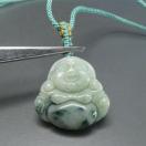 AAA天然柄入り(または緑入り)本ひすいジェダイト布袋様彫刻ペンダントトップ 石サイズ約25x25x5.5mm