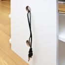 背面にはコードを通す穴が2か所(上段1か所、下段1か所)あります