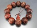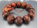 AAA天然木材 血檀木 六字真言文字彫り 約20mm玉 12粒