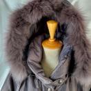 ★少しタマムシ色が入っているようで、フードのは高級毛皮フォックス使用!そして中綿に暖かいダウン使った素敵なダウンロングコートです!!