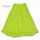 鮮やかなグリーンが目を引くTWIN-SETのロングスカートは、軽やかで動きのあるプリーツデザインが特徴です。生地にはドット模様が織り込まれており、シンプルながらも個性的なアクセントを加えています。フローティング感のあるシルエットで、歩くたびに美しく揺れ、フェミニンな印象を引き立てます。カジュアルな日常使いから、特別なシーンまで幅広く活躍するアイテムです。