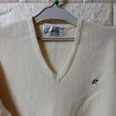 このアイボリーのVネックセーターは、シンプルながらも洗練された印象を与え、様々なコーディネートに合わせやすいアイテムです。リブ編みの裾がしっかりとしたフィット感を提供します。
