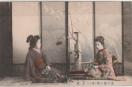 明治期のものと推察される美人芸三味(生花)手彩色はがきです。