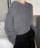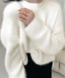 ふわふわとした柔らかな手触りが心地よい、フェミニンなシャギートップスです