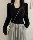 普段着ニット韓国風/着やせトップス秋冬/無地ニット通勤女性