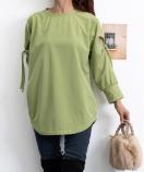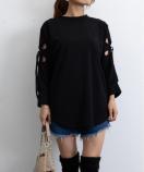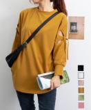 袖のリボンデザインが、さりげなくおしゃれな雰囲気をプラスするTシャツカットソーです