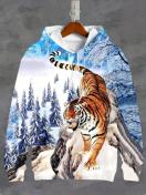 メンズ 3D デジタル アニメ スタイル タイガー イン ザ スノー パターン フード付きスウェットシャツ カンガルーポケット付き、春と秋のアウトドアアクティビティに最適なスポーツファッションフーディー