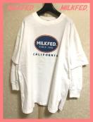 ミルクフェドのかわいい完売レイヤード風オーバーサイズサークルロゴロンTです。