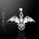 神聖なペンタクルで休むコウモリ ~ スターリングシルバー ペンダント ジュエリー TPD1078