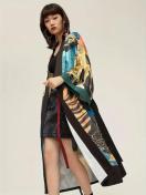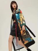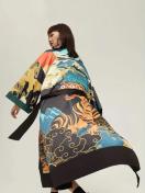 トラ柄のオープンフロントベルト付きの着物、カジュアルなロングスリーブのミドル丈のゆったりした着