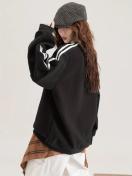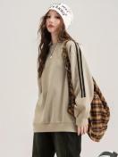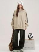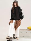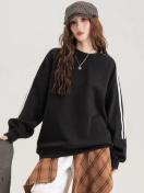 コントラストトリムスウェットシャツ、クルーネックカジュアル長袖スウェットシャツ、レディースウェア
