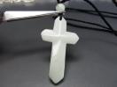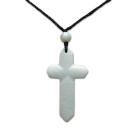 AAA薄目天然ひすい本翡翠ジェダイト十字架黒糸ネックレス