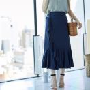 サイドからゆったりと美しく流れ落ちるラッフルが視線を誘う巻きスカート