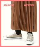 ミルクフェドのかわいいロゴプリーツフレアロングスカートです。