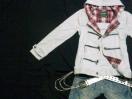 ●フードの裏側がチェック柄になっているオシャレなショート丈ジャケット。