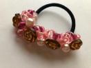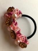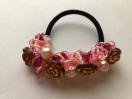 キラキラピーズとパールピーズと薔薇を盛り盛り編み込んで、ヘアゴム を作りました。