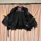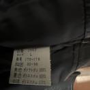 黒でカッコが良いです。サイズはLです。身長170〜178cm 胸囲90〜98cm 着丈68cm 肩幅57cm 身幅64cm 袖丈63です。左袖のセカンドファスナーのとってが欠品しています。ベルトも傷んでいますが着用には問題はありません。軽く暖かく柔らかい感じです。素材は表地ポリウレタン100%.裏地ポリエステル100%.中綿ポリエステル100%です。バックプリントがおしゃれでカッコ良いです。