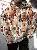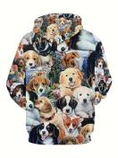 メンズ 犬柄 フード付きスウェットシャツ ポリエステル100% 軽いストレッチ性のあるカジュアルニット生地、アウトドア、ナイトアウト、お祭りなどあらゆる場面で活躍する犬柄パーカー - レギュラーフィット 男性用