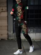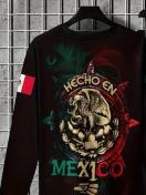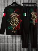 メキシコ イーグル パターン メンズ 2 ピース アウトフィット、快適な長袖 T シャツとカジュアルなルーズ スウェット パンツ セット、秋、紳士服