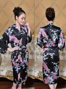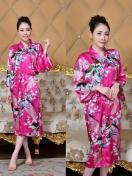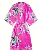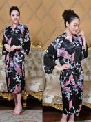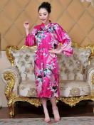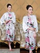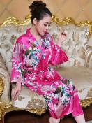 孔雀と花柄のサテンナイトローブ、和風のベルスリーブVネックの着物ローブとベルト、女性用の寝間着