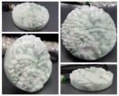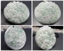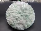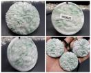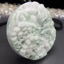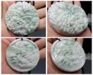 逸品緑入りひすい本翡翠風水風景彫りデカいペンダント 直径約52.8mm 厚さ約12-13mm 大きいサイズ 石重量約65g前後