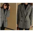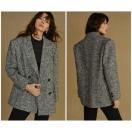 白黒灰色グレーテーラードジャケットアウターシーインSHEINMOTFSTUDIOピークカラーヘリンボーンピージャケットトラッドオーバーサイズ